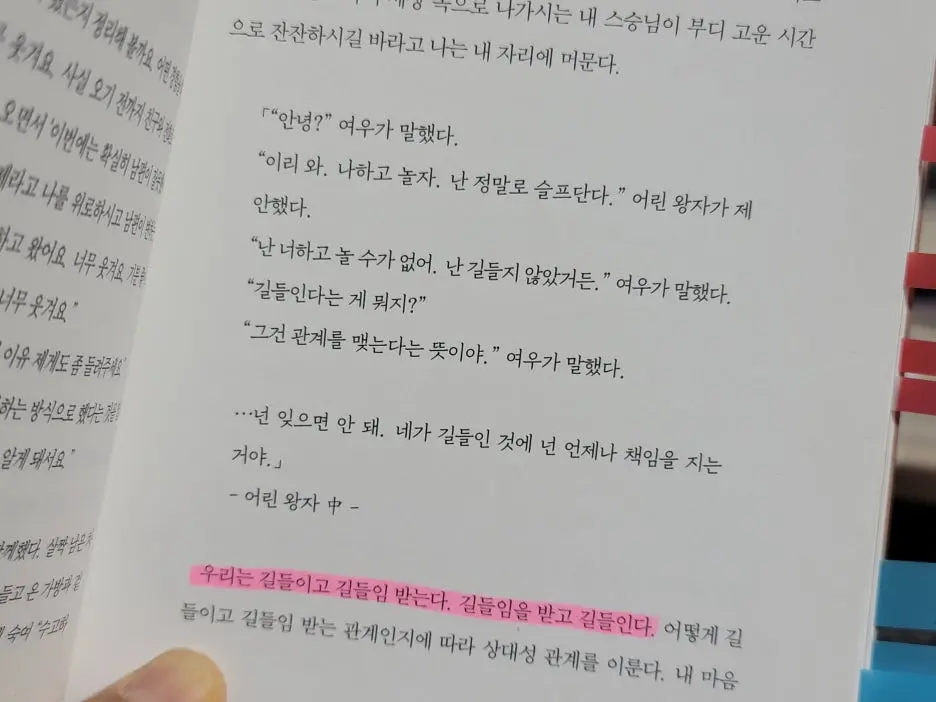 누군가에게 길들여진다는 것은 그 사람의 세계를 받아들인다는 뜻이기도 하다. 그러나 그 과정에서 나의 세계가 사라진다면 그것은 건강한 길들임이 아니다.