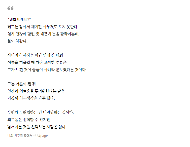 바로 그 필연적인 외로움을 너무 잘 알기 때문인지 모르겠습니다.