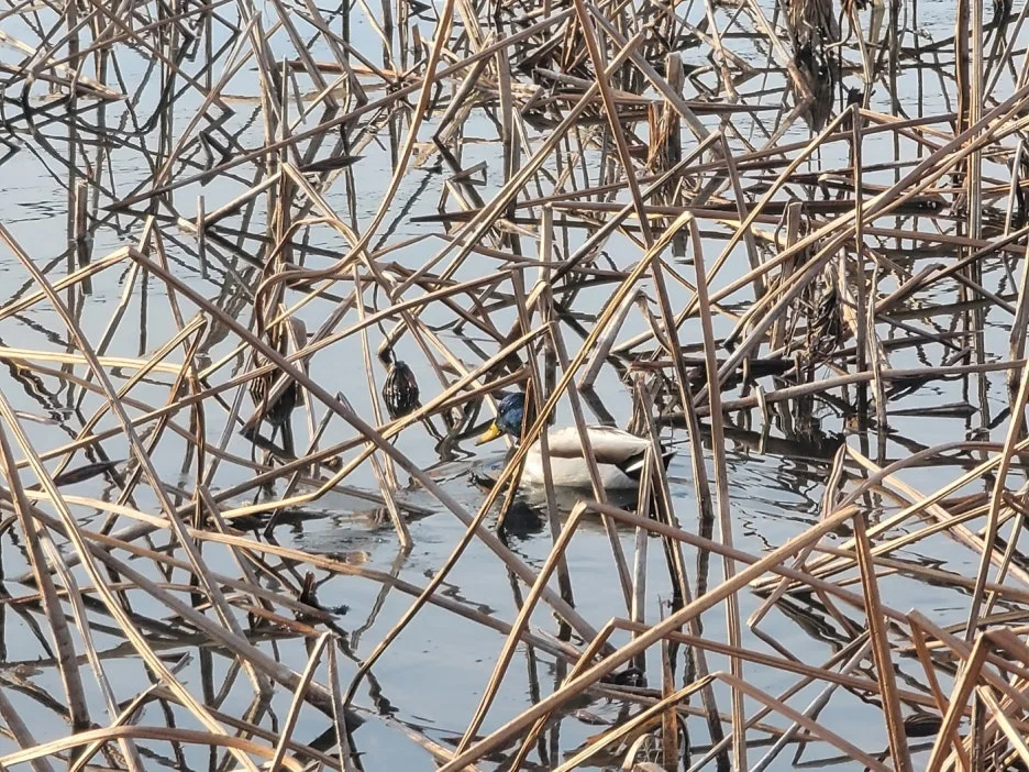 그 얼음 위로는 겨울 오리들이 한가득 모여 있었다. 얼지 않은 작은 물웅덩이를 찾아 그들은 연신 엉덩이를 치켜올리며 물속에 머리를 자맥질하고 있었다. 정적 속에서도 그들만의 시끄러운 몸짓은 묘한 활기를 더했다. 이 겨울 풍경은 가을의 습지와는 완전히 다른 이야기를 들려주는 듯했다.