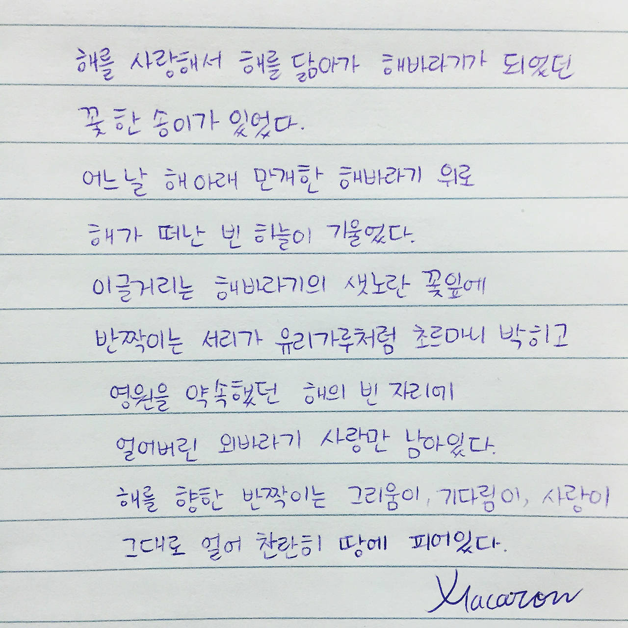 해에게 부정당해도 해를 사랑하는 것 말고는해바라기에게는 다른 선택권이 없다..