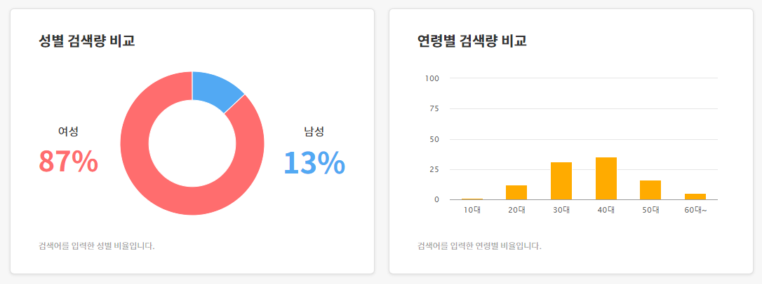 '아리따움' 키워드의 사용자 통계 (성별/연령별)