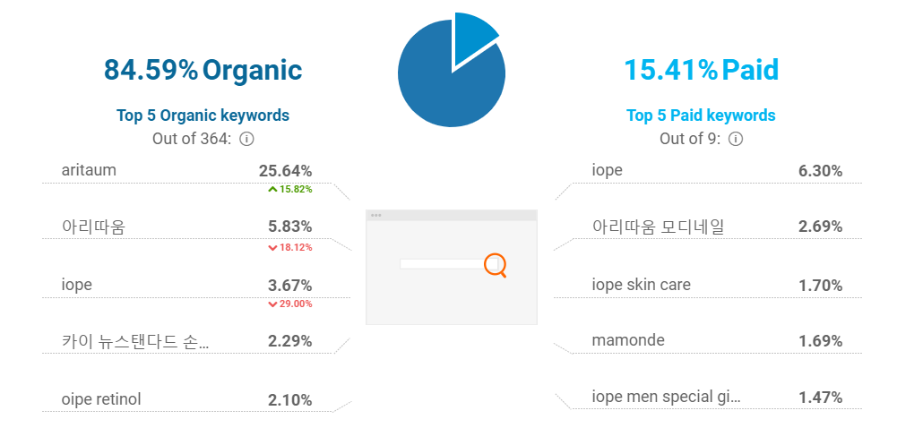 시밀러웹을 통해 본 아리따움의 유입 키워드 Top 5