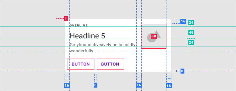 구글의 머티리얼 디자인 가이드, 대부분의 수치값이 8을 기준으로 한다.