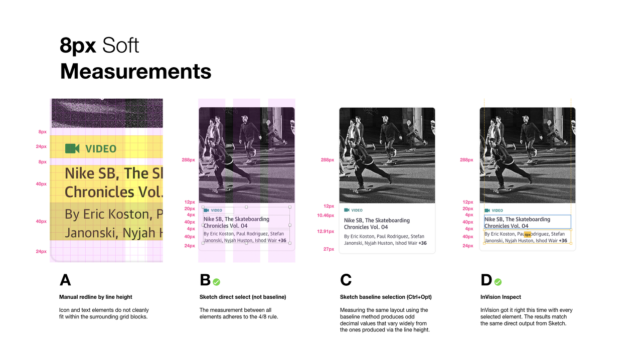 명칭이 8포인트라 조금 헷갈릴 수도 있는데요. 우리가 웹 작업하는 72 dpi에선 8pt가 곧 8px입니다. 1:1로 봐주세요. 위 이미지를 살펴보면 별다른 규칙없이 작업한 것보다 더 일관성 있고 정렬된 결과물을 얻어낼 수 있다는걸 알수있습니다. 초심자, 신입이라면 이러한 것들을 먼저 습득하고 여기에 자기 것을 조금씩 타가며 변형을 주는 게 좋은 공부 방법이 될 수 있다 생각합니다. 8pt 그리드를 적극적으로 활용한 대표적 디자인이 구글의 머티리얼 디자인입니다.