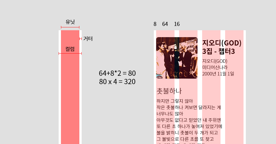 320 그리드 시스템을 8의 기준값으로 적용한 예 - http://regularbold.co.kr/