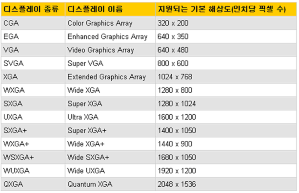 웹사이트에 적용되는(앱에 일부 적용) 그리드 시스템을 이해하려면 먼저 디스플레이의 해상도부터 알고 넘어가야 합니다. 아래 표부터 살펴보겠습니다.