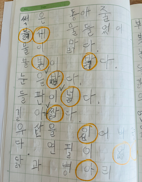 그러던 어느 날 아이는 선생님께 새로운 종이를 받아왔다며 나에게 다른 것보다 유난히 빳빳한 종이를 내밀었다. 급수별(수준별)로 분류된 듣고 적기 리스트였다. 듣고 적기라는 말이 순간 어색했지만 곧 받아쓰기와 같은 말임을 깨달았다.