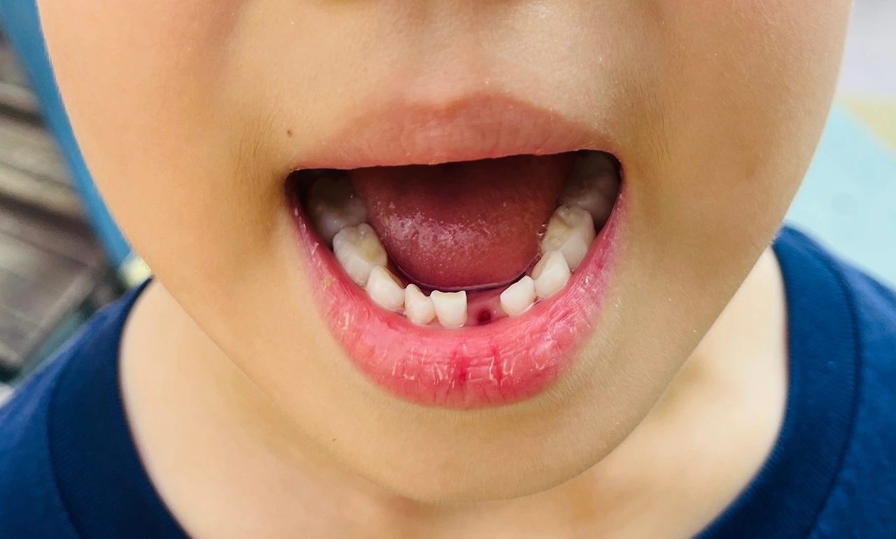 이렇게 어느 날 갑자기 흔들리기 시작한 이는 그다음 날 기다렸다는 듯 바로 빠졌다. 조금씩 흔들리는 준비기간(?) 없이 바로 빠져 당황스러웠지만 아이는 드디어 첫니가 빠졌다는 사실에 기뻐했다.