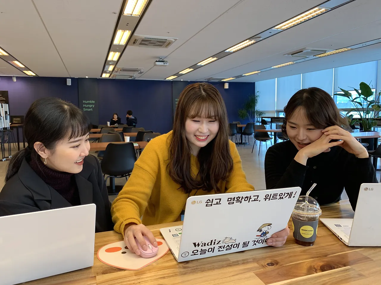 저는 새로운 기업을 발굴하고, 프로젝트를 만들어가는 일은 항상 즐겁고, 그 프로젝트가 좋은 반응을 얻었을 땐 정말 하늘을 날아다닐 만큼 기쁘답니다. 이런 PD 업무 이외에도 저는 진짜... 리워드사업실 PD님들과 함께 수다 떠는 시간이 즐겁습니다. 리워드사업실에는 겹치는 캐릭터가 하나도 없을 정도로 한 분 한 분 다 개성이 뚜렷하고, 재밌는 분들이 많답니다. 그래서 함께 수다를 떨면 웃음이 끊이질 않아요. ‘옆에 있는 동료가 최고의 복지다’라는 말이 어떤 뜻인지 진심으로 이해가 가더라고요:D
