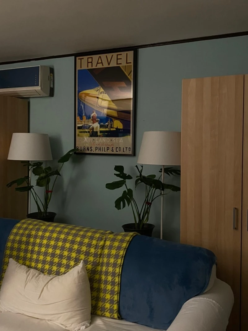 집을 가꾸는 건 언니의 취미다. 한 달에 한 번은 집 구조가 바뀌어 있다. 지난번에 러시아 여행을 다녀오고 나서는 방 한쪽은 민트색 벽이, 한쪽은 회색이 되었다. 거실의 티브이는 흰색 수납장 위에 있다가 어느 날은 그레이 색으로 바뀌어있다. 곳곳에는 화분이 있는데, 종종 새로운 식물 가족을 맞이한다. 화분 두 개를 옆에 둔 알록달록 쿠션이 올라간 흰색 소파, 민트색 벽지, 파란색 신발장의 거실을 보고 있으니 그렇게 살고 싶었던 미드 센츄리 모던 스타일의 집에 이미 살고 있다는 것을 깨달았다.