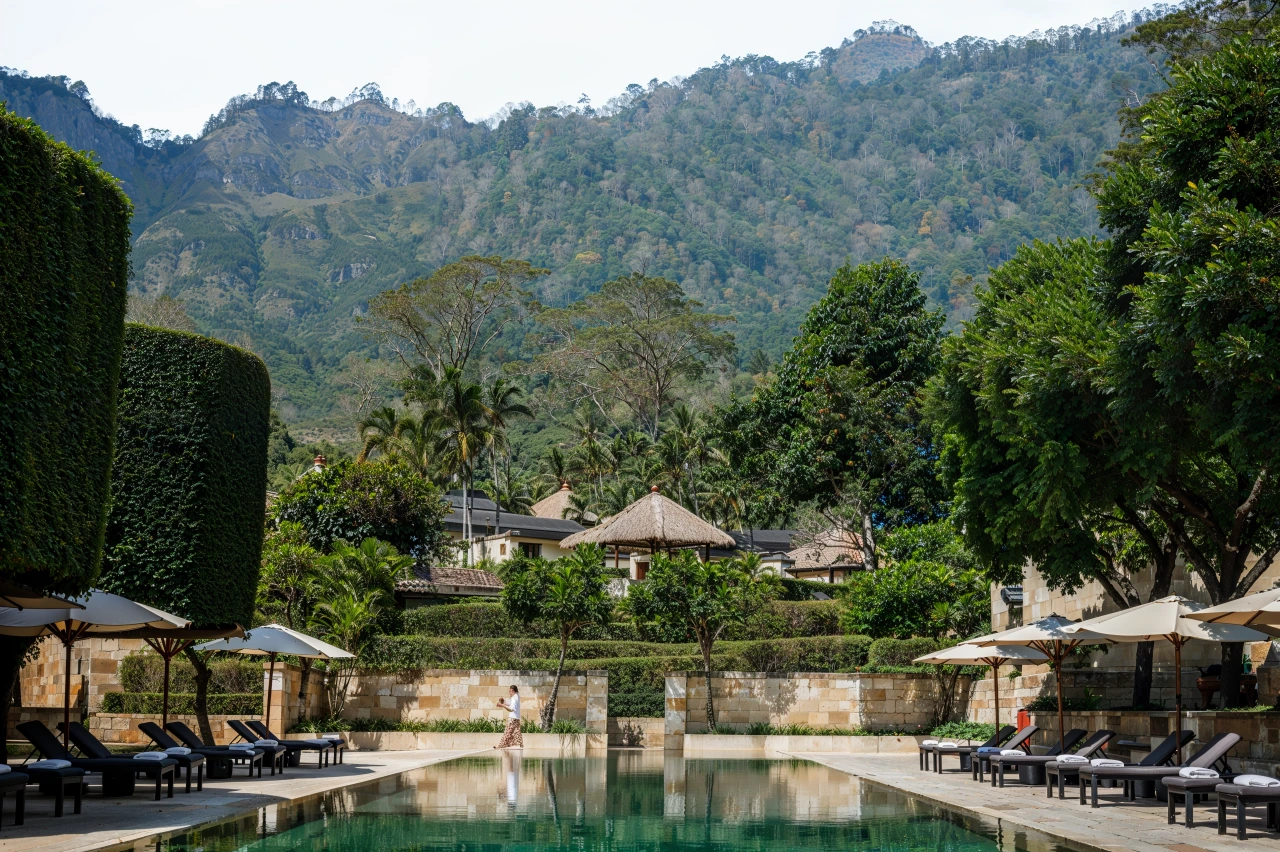 발리의 전통 마을 위로 펼쳐진 Amandari,