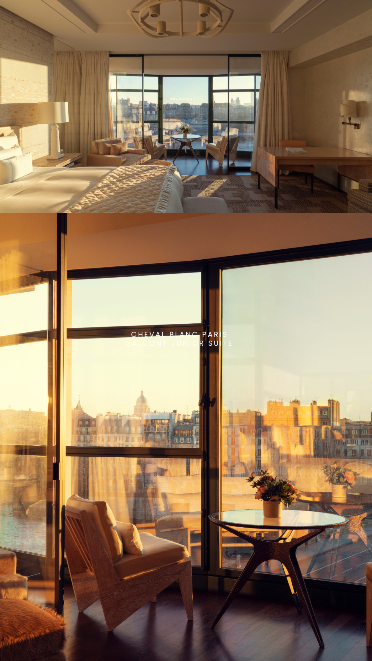 슈발 블랑 파리 (Cheval Blanc Paris) 는 파리의 ‘럭셔리 하우스’가 어떤 얼굴을 가질 수 있는지 가장 분명히 보여준다. 루이비통 (LVMH)이 파리에 처음 세운 호텔로, 단 72개의 객실만을 두어 프라이버시와 맞춤형 서비스를 극대화했다.