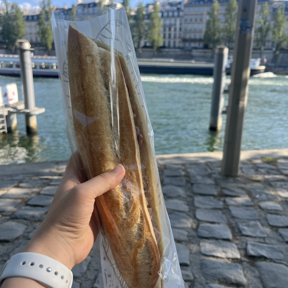 박물관 밖으로 나오니 어느덧 6시 저녁시간. 이제 다시 2시간을 달려 블로아로 돌아가야 되는데, 저녁 시간이 애매하여 주변 가게에서 샌드위치를 사 먹기로 했다. 루브르 박물관 근처에 있는 불랑제리에 가서 잠봉뵈르 획득. 센강으로 가서 냠냠 맛있게 먹었다. 바로 앞에 대중교통으로 이용되는 선창작이 있었는데, 샌드위치를 먹고 있으니 배가 도착했다. 사람들이 탑승하고 출발하려는데, 저 멀리서 어떤 아저씨가 "STOP!!"을 외치면서 뛰어온다. 하지만, 배는 미련 없어 떠나고, 배 안에 사람들은 얄밉게 손을 흔들며 인사한다. 아저씨가 씩씩거리면서 도착했는데, 배는 이미 떠났고 아저씨는 그 앞에서 짜증을 내시다가 별수 없는지 어디론가 가버리신다. 오늘도 우당탕탕 프랑스.