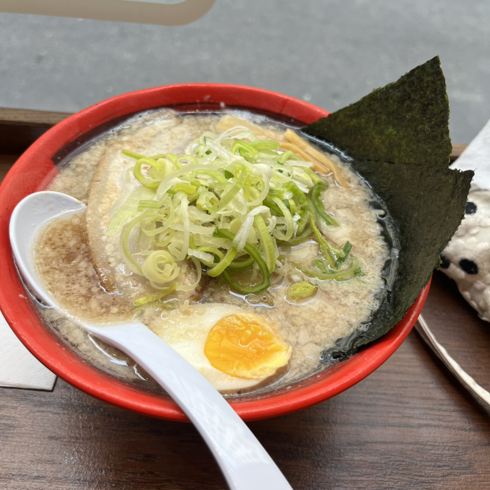 10여분을 기다리니 서빙되는 라멘. (좌) 내가 시킨 라멘, (우) 윌리엄이 시킨 라멘. 한눈에 봐도 국물 농도가 다르다. 국물 위에 둥둥 떠있는 게, 마늘이 아니라, 돼지기름이다. 나는 오기 전에 리뷰로, 짤 수 있으니 가장 가벼운 단계로 시키라고 해서 그것으로 시켰는데, 윌리엄 거 먹어보니까 진짜 짜다.. 그래도 둘 다 맛있게 먹었다.