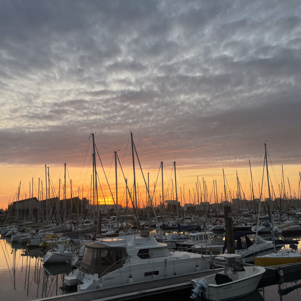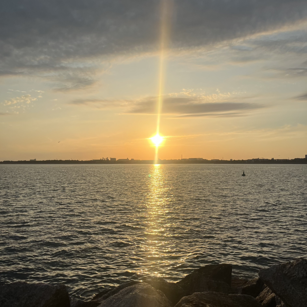 숙소에 돌아와 재정비 후, 구시가지에 아이스크림을 사 먹기로 했다. 나오니 마침 딱 해가 지는 중. 노을 아래 찰랑거리는 바다가 너무 이쁘다. 흔들리는 바람과 배의 깃대에 늘어져 있는 철로 된 줄이 부딪혀 칭칭- 소리를 내는데, 오래오래 기억될 소리. 오랜만에 감성 100% 충전. 근심 걱정 다 잊히는 풍경이다. 어제 구시가지에 가면서 본 다리가 있었는데, 윌리엄이 그 다리 끝에 뭐가 있는지 궁금하다고 건너보자고 했다.