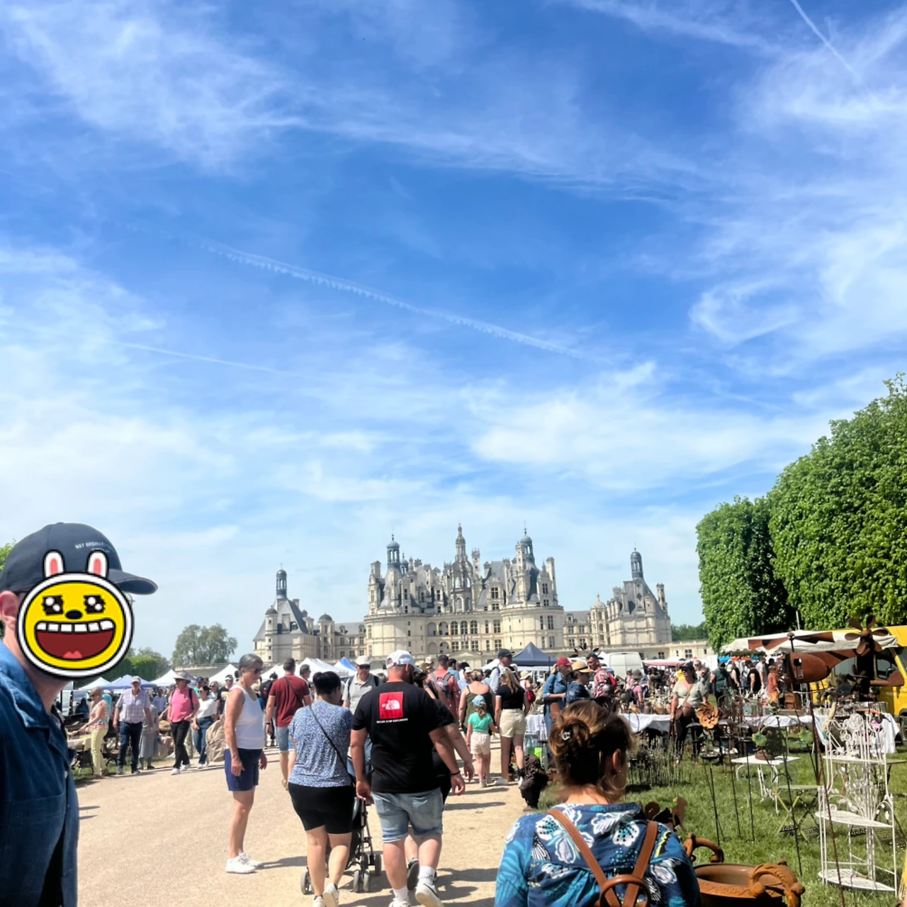 수많은 골통품점 사이에 멀리 보이는 Chambord 성. 항상 겨울에만 방문해서 몰랐는데, 여름이 다가오는 시점에 보니 정말 훨씬 아름다운 성이다. 성 외곽이 흰색인데, 파란 하늘과 푸릇한 나무와 대비되어 더 돋보인다. 겨울에 봤을 때는 별 감흥이 없었는데, 여름에 보니 왜 세계 문화유산에 등록된 문화재인지 고개가 끄덕여진다.