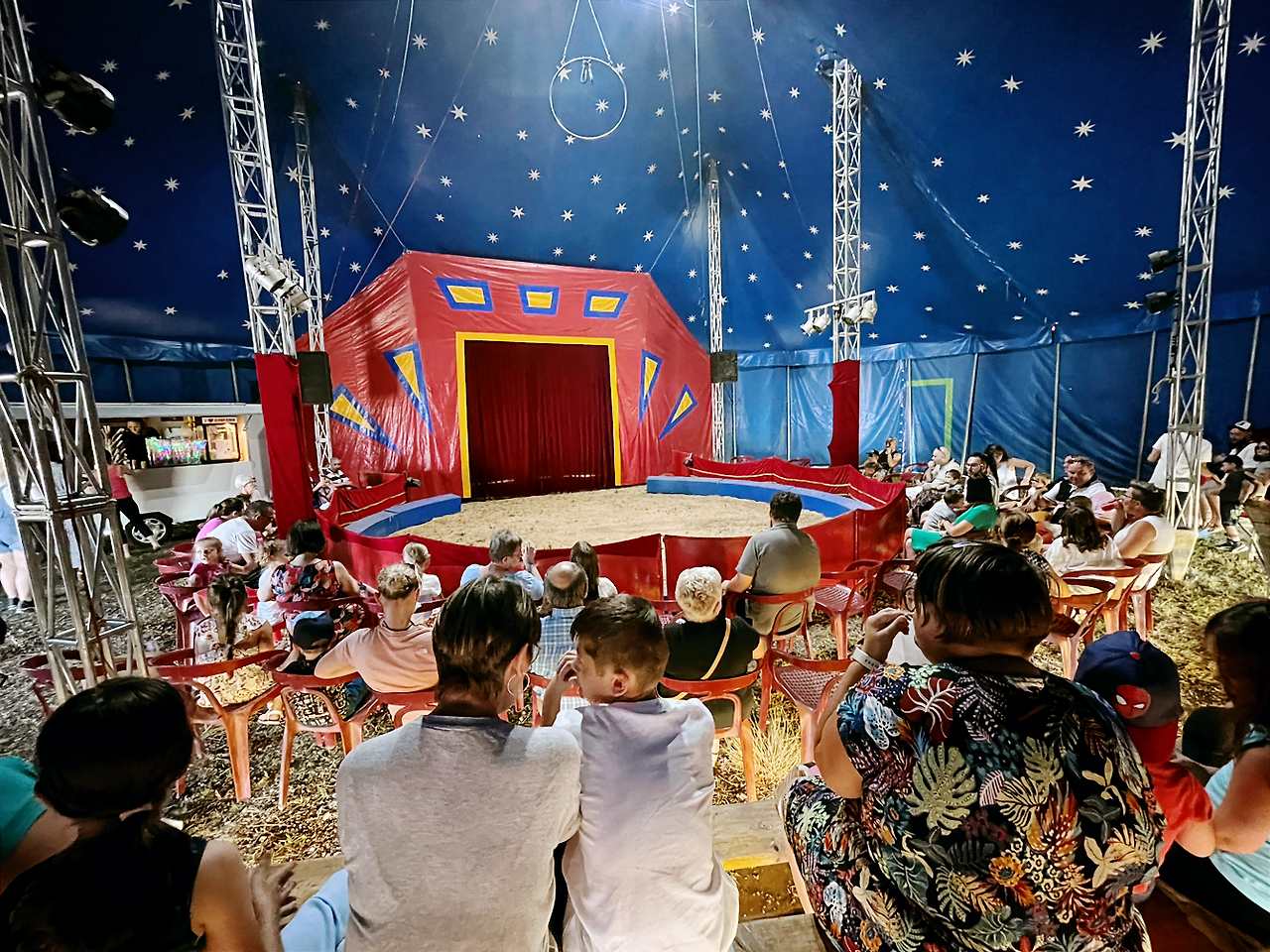 그 시기에 있었던 몇 안 되는 좋은 기억 중 하나가 여름 행사입니다. 여름이면 유랑극단, 이동 놀이동산, 자동차 곡예단 등이 시골 마을을 찾아옵니다. 나름의 문화생활을 즐길 수 있는 셈입니다. 이 여름 축제를 두 가지로 나눠보면 이렇습니다. 먼저 더운 날씨 생맥주와 로제 와인을 마실 빌미를 제공하는 음악회 같은 행사가 있습니다. 그리고 서커스 같이 어린이를 겨냥한 이벤트가 있습니다. 아이가 좋아하면 부모는 따라오기 마련이니까요. 지난 주말 저희도 집에서 차로 십분 거리 시내에 서커스단이 왔다고 해서 보러 갔습니다. (*이 글이 쓰인 시기는 22년 여름입니다)