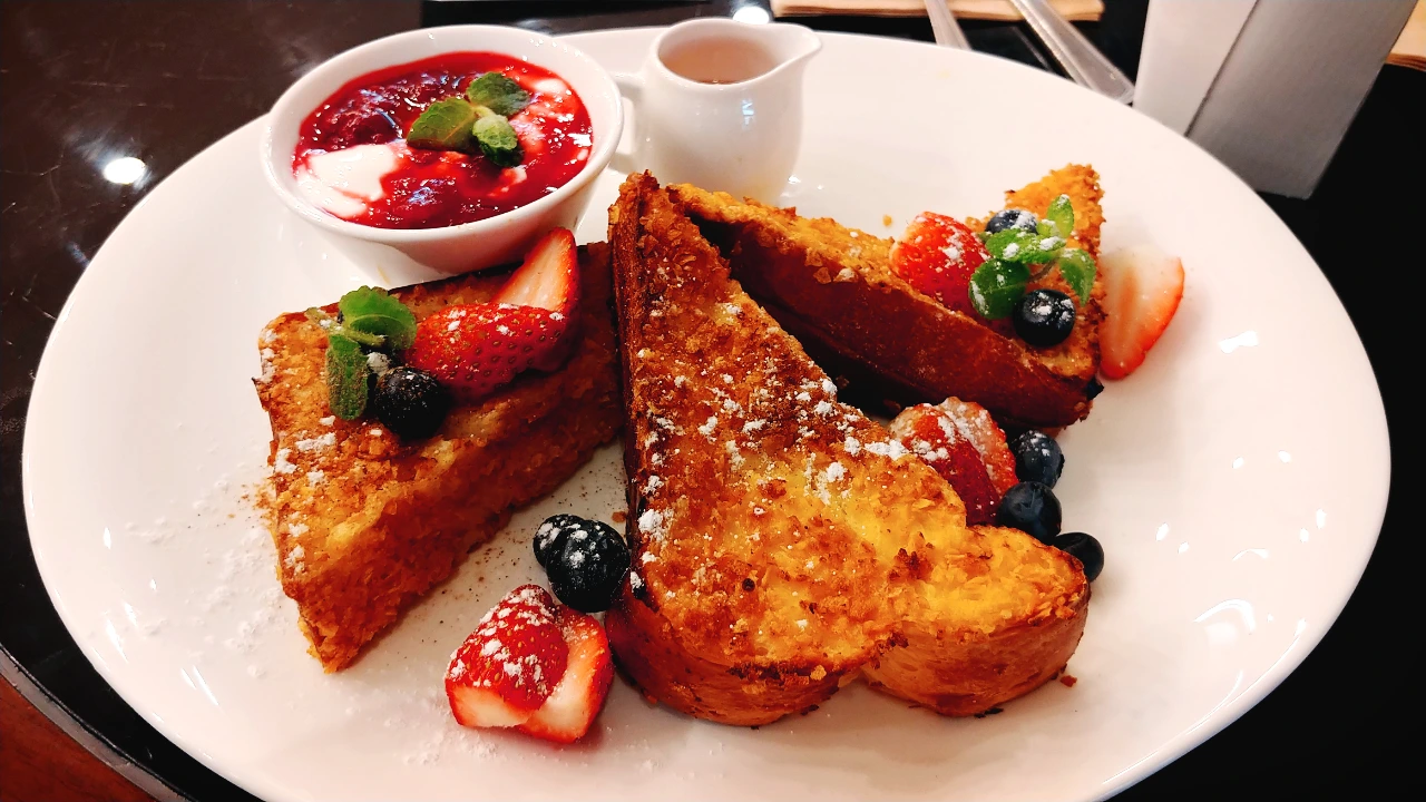 현재 메뉴는 달걀물을 살짝 묻힌 대신 코코넛 가루를 묻혀 구워 좀 더 깔끔한 맛이 난다. 다만 그릭 요거트에 베리 콩포트를 곁들인 것이 전부라 좀 아쉽다.