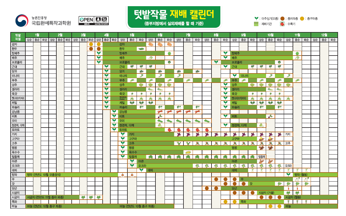 *초보가 참고한 농진청 국립원예특작과학원 텃밭작물 재배 캘린더
