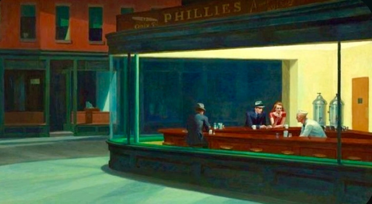 나는 문득 ‘에드워드 호퍼의 밤을 지새우는 사람들(Nighthawks)‘ 을 떠올렸다. 그 그림 속 인물들은 한 공간에 있지만, 서로에게 등을 돌린 채 각자의 고독 속에 잠겨 있다.