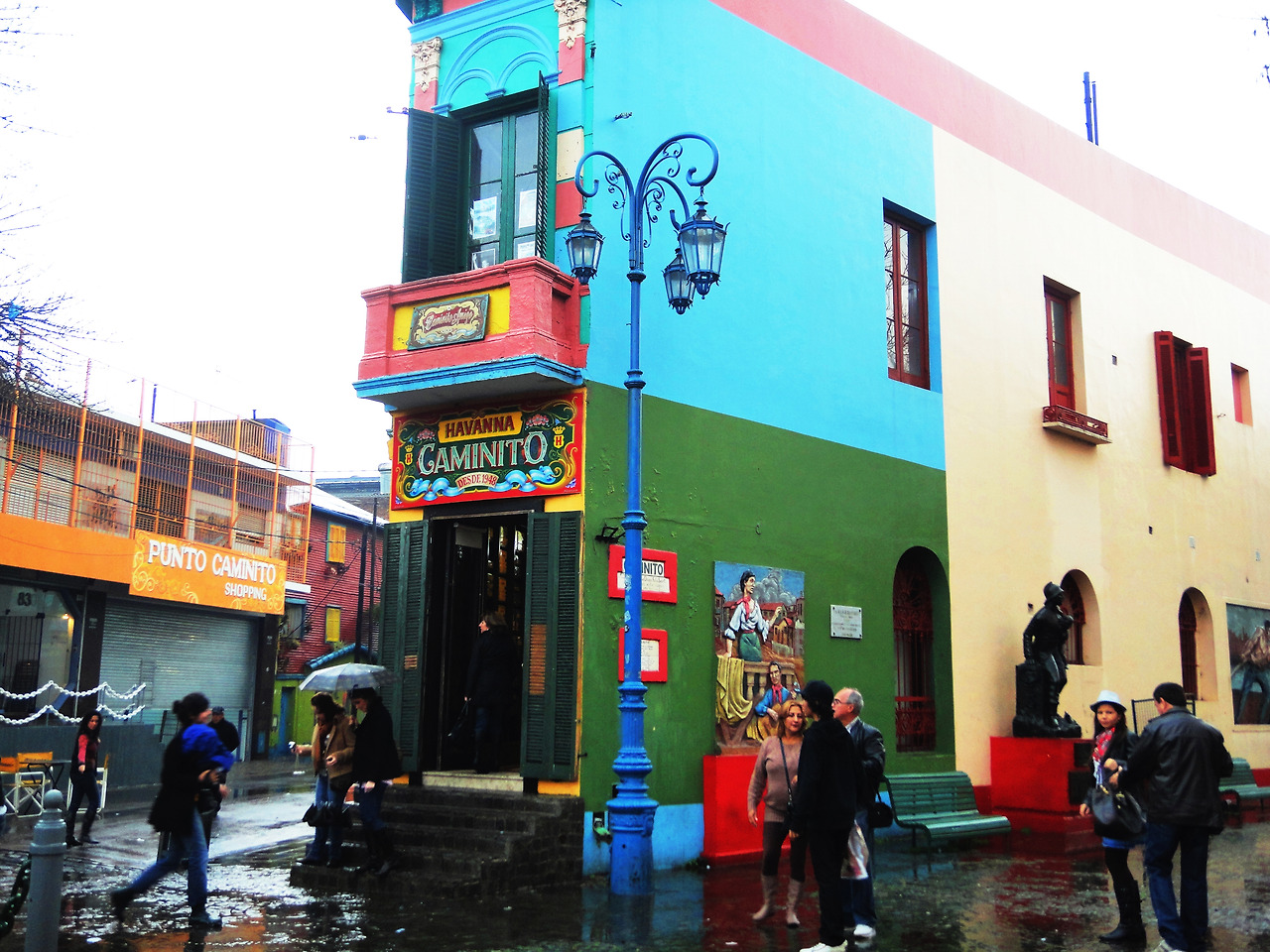 조선소에서 쓰다 남은 페인트로 벽이며 지붕 등을 칠했다고 하는 작은 골목이라는 뜻의‘Caminito’는 알록달록, 아, 어느 곳에 내가 서 있어도 독특한 화보가 나올 듯하다. 작은 가게마저도 구석구석 볼거리가 많다. 에바 페론도, 20세기 초 일세를 풍미했다는 탱고가수 ‘카를로스 가르델’, 이곳 보카 주니어스 출신의 축구황제 ‘디에고 마라도나’ 등 여기저기 서민들이 사랑하는 인물 피규어들이 반가운 인사를 한다. 아직도 추적추적 내리는 비, 조금 더 걸어가니 카미니또 가까운 곳에 이들의 영웅 마라도나가 뛰었던 보카 주니어스 경기장이 보인다.