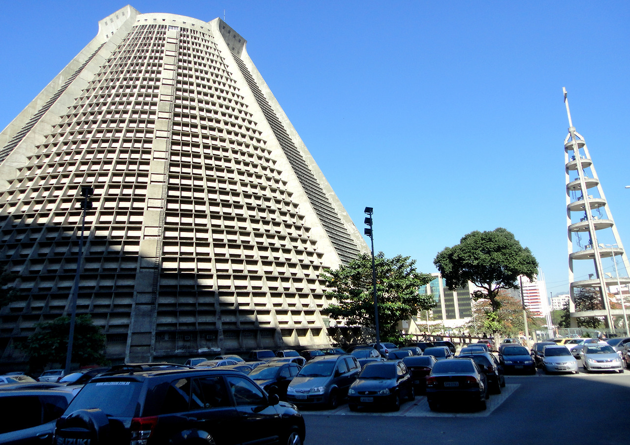멀리서 보면 거대하고 남성적인 건물이 눈에 들어온다. 대성당 Catedral Metropolitana de Sao Sebastio이다. 누가 저 건물을 교회라고 하겠는가, 가까이 다가서도 이 투박한 모양새가 미래지향적인 도서관 정도로 보인다. 간결한 구조를 좋아하는 나로서는 흥미가 생기는 건축물이다. 1964년에서 1979년 완공한 현대적인 건물로 거친 노출 콘크리트의 질감이 아름답기까지 하다.