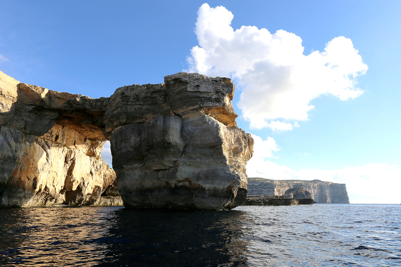 버스는 빅토리아를 벗어나 녹색 벌판을 달리더니 곧 꿈틀거릴 것 같은 바위들이 바닷가로 향해있는 회색 빛 원시의 해안가에 사람들을 쏟아 놓는다. 정류장에는 드웨이라 광장이라고 쓰여 있는데 오른쪽에는 소박한 레스토랑이 손님을 기다린다. 오른쪽으로 내려가니 보트 트립을 하는 곳이다. 몰타 섬의 블루그라토처럼 만의 안쪽과 동굴들을 보여주는데 블루그라토처럼 감동은 덜 하지만, 아주르윈도우의 뒷모습을 볼 수 있는 방법은 이 것뿐, “배를 타지 않는 것보다는 배를 타는 것이 훨씬 낫다”라는 생각이다. 내가 이곳을 생각할 때마다 출렁이는 배 위, 눈부신 햇살 속에서 엄청나게 거대한 해식동굴 사이를 왔다 갔다 하며 다녔던 그 시간이 살아 움직이기 때문이다.
