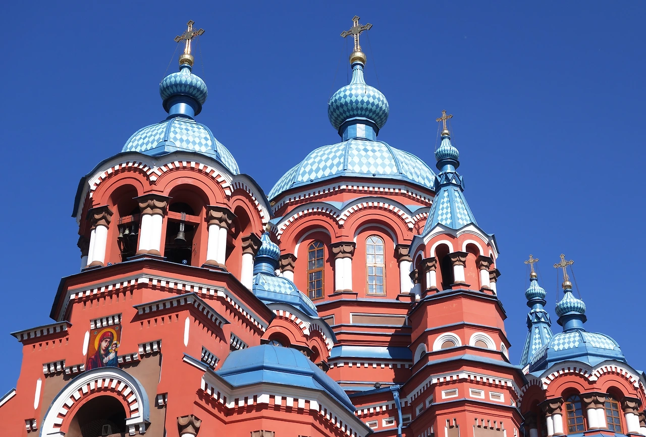 종일 전차를 타고 다닌 이르쿠츠크 순례길에서 만난 강 건너에 있는 카잔카스키교회는 그냥 요즘 지은 교회답게 멀리서 보면 더욱 화려하다. 2000년 건축했다고 하는데 다른 교회보다도 시민들이 더 많이 찾는 것 같았다.