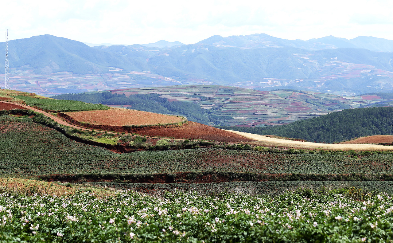 윈난의 흙빛깔이야 대부분 붉은색을 띠고 있지만 동촨의 땅이 더 아름다운 것은 이곳의 능선은 다른 곳의 언덕보다 비교적 낮은 각도의 넓은 대지가 긴 시야를 확보해준다. 게다가 땅에 대한 긍지랄까, 주민들은 그들의 노동에 자긍심을 덧입혔다. 그래서 더욱 빛난다.