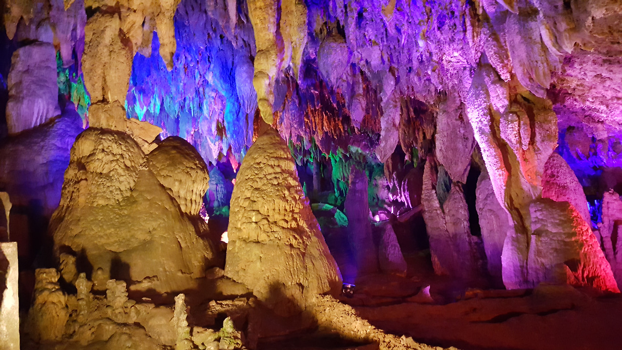 색 조명으로 현란하게 장식한 동굴을 별로 좋아하지 않는다. 그래도 너무 아름다운 종유석과 석순들