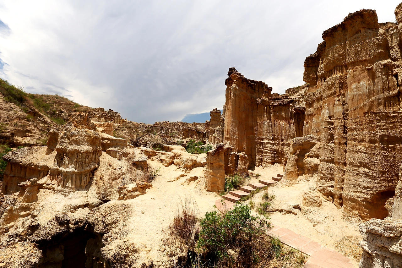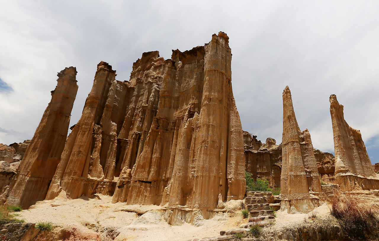 색깔은 흙빛이지만 실제로 남아있는 기암괴석들은 퇴적암이라고 한다. 하지만 가까이 보면 조직이 연해서 손으로 만지면 부스스 부서질 것 같은 부분들이 많은데 그야말로 연약한 지구의 속살이다. 이곳에서는 다른 곳보다도 시간의 변화가 빠르게 일어날 것만 같다.