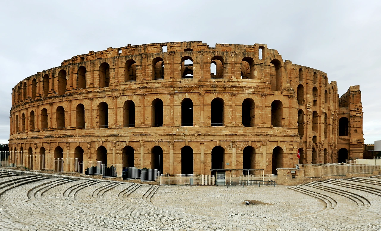 튀니스에서 남동쪽으로 약 200킬로미터, 시골마을에 놀랍도록 아름다운 원형극장이 있다. 이곳은 2,000년 리들리 스콧 감독의‘글래디에이터’라는 영화를 찍은 곳으로 더욱 유명해졌다.