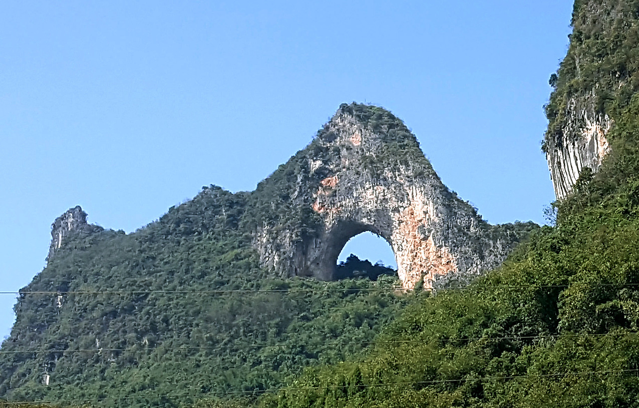 대용수에서 약 1Km 정도, 둥글게 구멍이 뚫린 월량산月亮山이 있다. 오르는 사람도 있지만, 천지가 수려한 이곳에 오면 월량산 정도에는 흥미가 느껴지지 않는다. 월량산 길 건너편, 나는 지친 여행자를 붙드는 식당들이 있는 곳에서 바라보는 것으로 족하다.