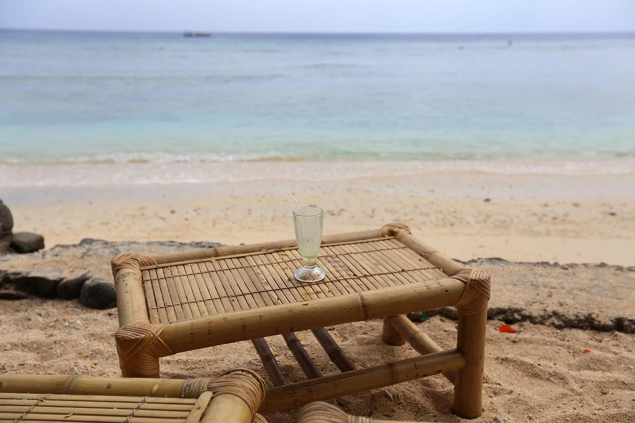 이 작은 섬에서는 숙소에 빨리 들어가는 것이 중요한 것이 아니었다. 두근대는 가슴을 진정시키는 방법은 일단 뭔가를 먹는 일이다. 눈부신 해안선에서 눈을 떼지 못한 채, 선착장 근처 반얀트리 레스토랑에서 일단 자리 잡고 밥부터 시켰다.