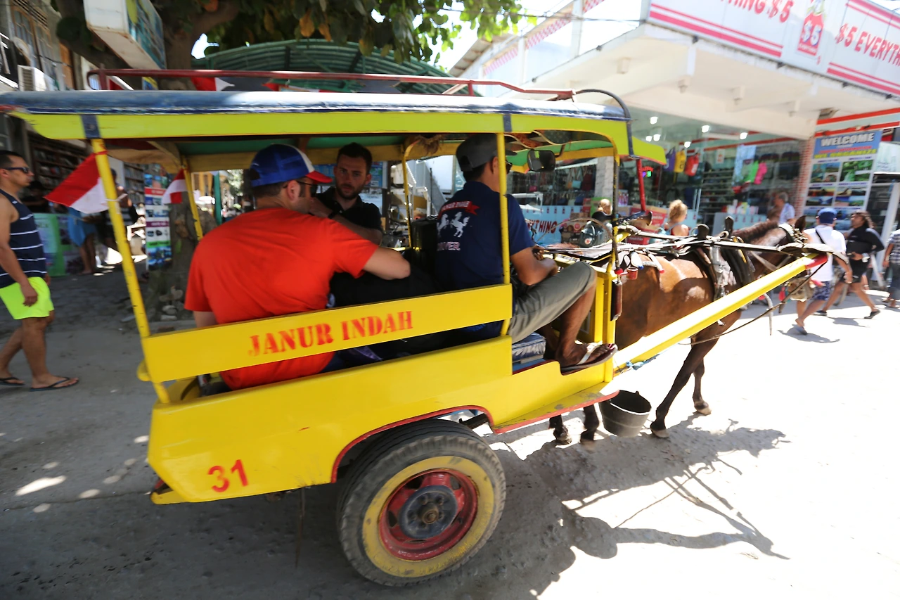 발리 빠당바이에서 스피드보트를 타고 와서 지쳐 있는 사람들, 롬복에서 가볍게 강 건너듯 넘어온 사람들, 발리나 롬복으로 나가기 위해 치모도(마차)에서 내려 부두로 내려가는 사람들, 표정을 보면 제일 힘든 일은 포장도로가 없는 트라왕안에서 무거운 캐리어나 배낭을 가지고 다니는 것이다. 그나마 배낭은 좀 나아 보인다.