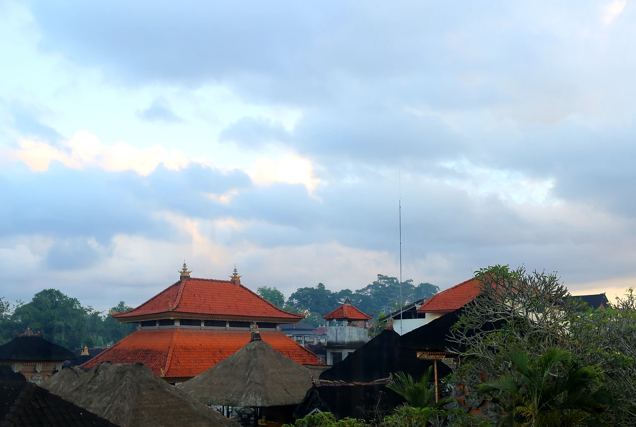 2017년 9월 28일 현재 분화 조짐을 보이고 있어 뉴스 일면을 장식하는 아궁 화산 Gunung Agung(해발 3,142m)은 발리의 전 주민으로부터 숭배되는 산신이며 삶의 기준이다. 발리의 방향은 아궁산을 중심으로 결정한다. 발리인들의 세계관은 산은 선이며 바다는 악으로 간주하며 신성한 산 쪽이 상위 방향이며 바다 쪽이 하위 방향이다. 그러므로 집안 사원의 제단이 아궁산을 향하는 것은 당연하다.