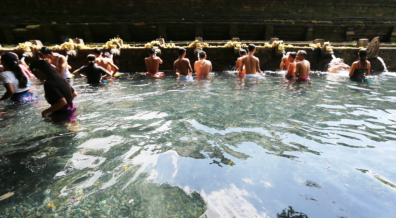 Tirta Empul 사원은 땀빡시링 마을에 있어 Tampaksiring사원이라고 부르며 구눙까위에서 매우 가깝다. 구눙까위와는 달리 넓은 주차장은 벌써 차들로 가득하고 입구는 사람들로 넘친다. “뭐지?”, “이 광경은?” 소문대로 발리인들이 가장 많이 찾는 사원이 맞는 것 같지만 현지인들보다 서양인과 중국인들이 더 많다. 관광버스 서너 대가 또다시 사람들을 쏟아놓는다. 아, 순간 되돌아가고 싶지만 이럴 때도 있는 거지, 다 좋을 수만은 없지 않은가.