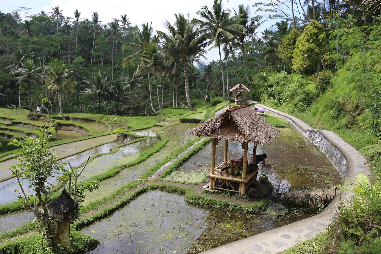 우붓 북쪽에 있는 뜨갈랄랑Tegallalang 쪽으로 가다가 북동쪽으로 들어간다. 교외로 한참을 빠져나가도 우붓이 위치한 기안야르Gianyar 지역이 살기가 좋은 것인지, 시골 마을 풍경은 끝이 없이 이어진다. 70퍼센트의 산악으로 이뤄진 발리를 돌아다녀보면 깊은 정글까지도 논을 일궈 살아가며 공터가 거의 없을 정도로 인구밀도도 높다. 발리 면적은 제주도의 3 배지만 인구는 6배가 훨씬 넘는다고 한다. 관광객이 아니어도 발리는 차고 넘친다.