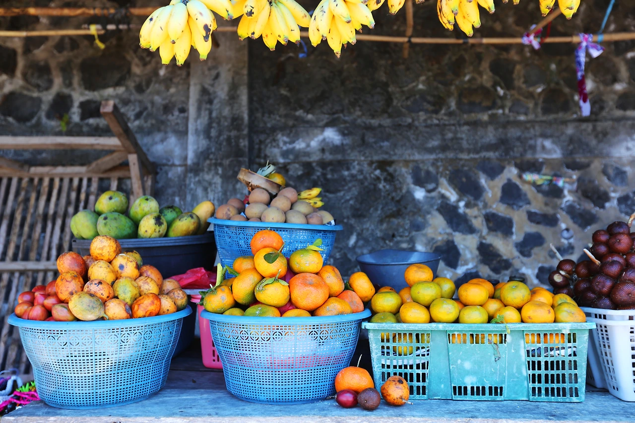 피곤했던 사원을 뒤로하고 30여 분만 북동쪽으로 올라가니 서늘하고 청명한 기운이 느껴진다. 완만하면서 넓게 경사진 낀따마니 지역으로 향하는 드라이브는 띠르따 엠뿔에서의 피곤함을 확 날려버린다. 고도가 높아지니 길가 가판대의 과일들도 종류가 달라진다.