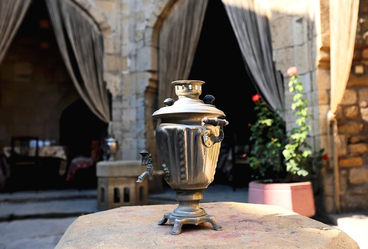 카라반사라이의 작은 뜰, 손님을 기다리는 사모바르