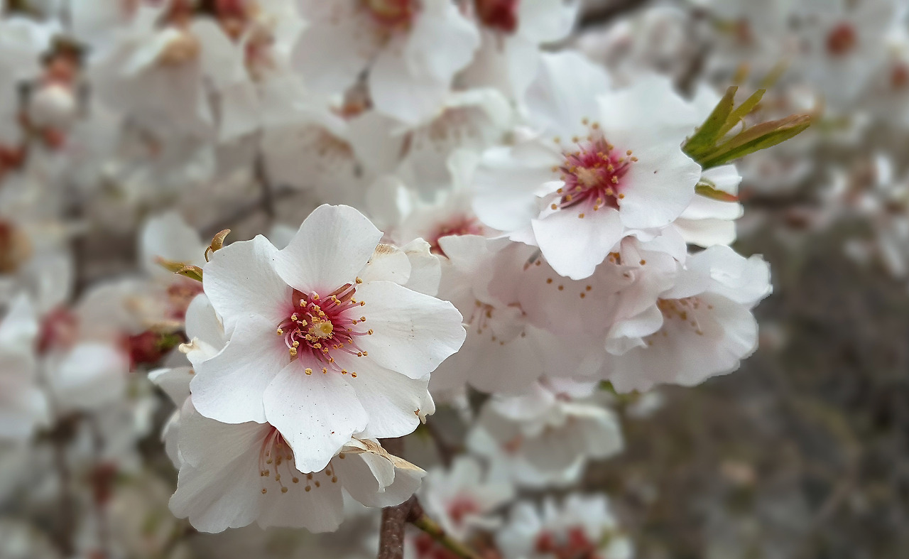 간간히 분홍빛의 복숭아꽃들이 있지만 산야를 하얗게 밝히는 복숭아꽃들은 모르고 보면 배꽃이라 해도 될 만큼 하얗다. 자세히 꽃을 들여다봐도 꽃잎의 안쪽이 복숭아빛처럼 붉은 것을 빼고는, 내가 아는 배꽃에 가깝다. 아무튼 야생에 가까운 복숭아나무라고 하는데 열매는 크진 않지만 먹을 수 있다고 한다.