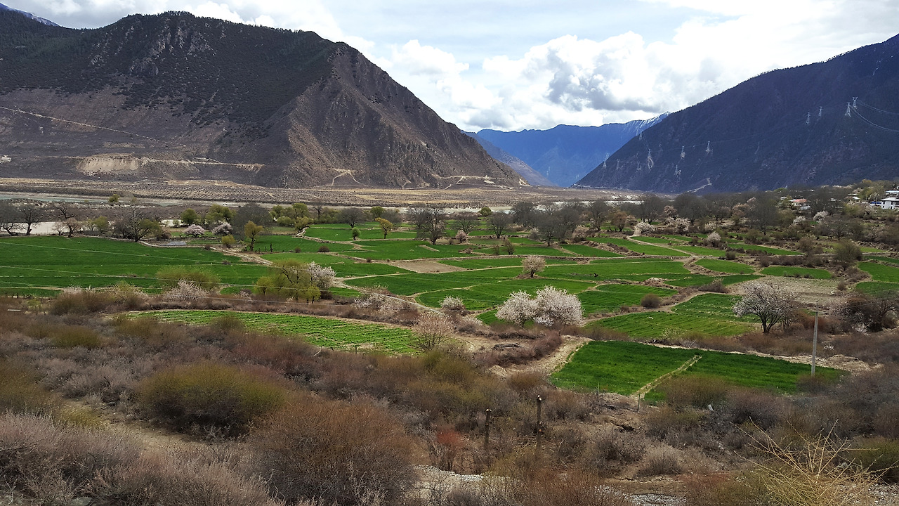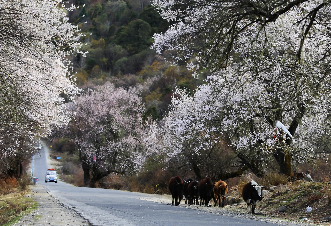 라싸 시내를 동쪽으로 빠져나가 해발고도 5013m의 미라산커우米拉山口를 지나면 잘 닦인 318번 도로의 양편에는 동화책에서나 나올 것 같은 풍경이 펼쳐진다. 감탄사를 내보이니 기사님이 한 말씀 거드신다. “이건 아무것도 아니야, 여행내내 복숭아꽃은 신물 나게 볼 것이야”