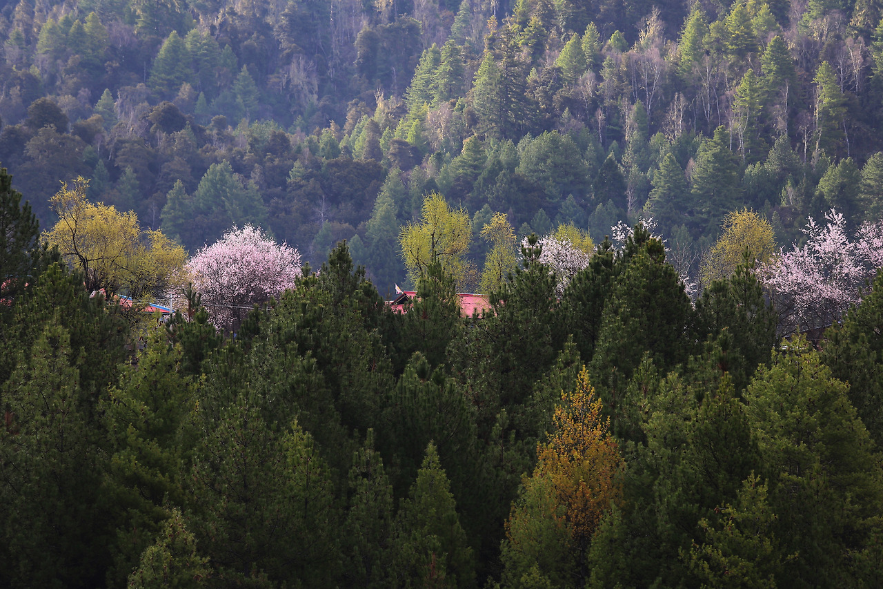 린즈 지역은 풍부한 식물군락이 압축되어 생태계가 형성된 곳으로 세계 제일의 식물박물관으로 불린다고 한다. 그도 그럴 것이 동서로 뻗어있는 녠첸탕글라念靑唐古拉 산맥과 히말라야 산맥이 린즈 지역 동쪽에서 헝뚜안橫斷산맥으로 인해 수직으로 막히면서 생성된 곳이 얄룽짱보대협곡이다. 린즈 지역은 ‘뒤집어진 ㄷ자’ 모양으로, 3개의 산맥 품에 안긴 황홀한 유토피아다.