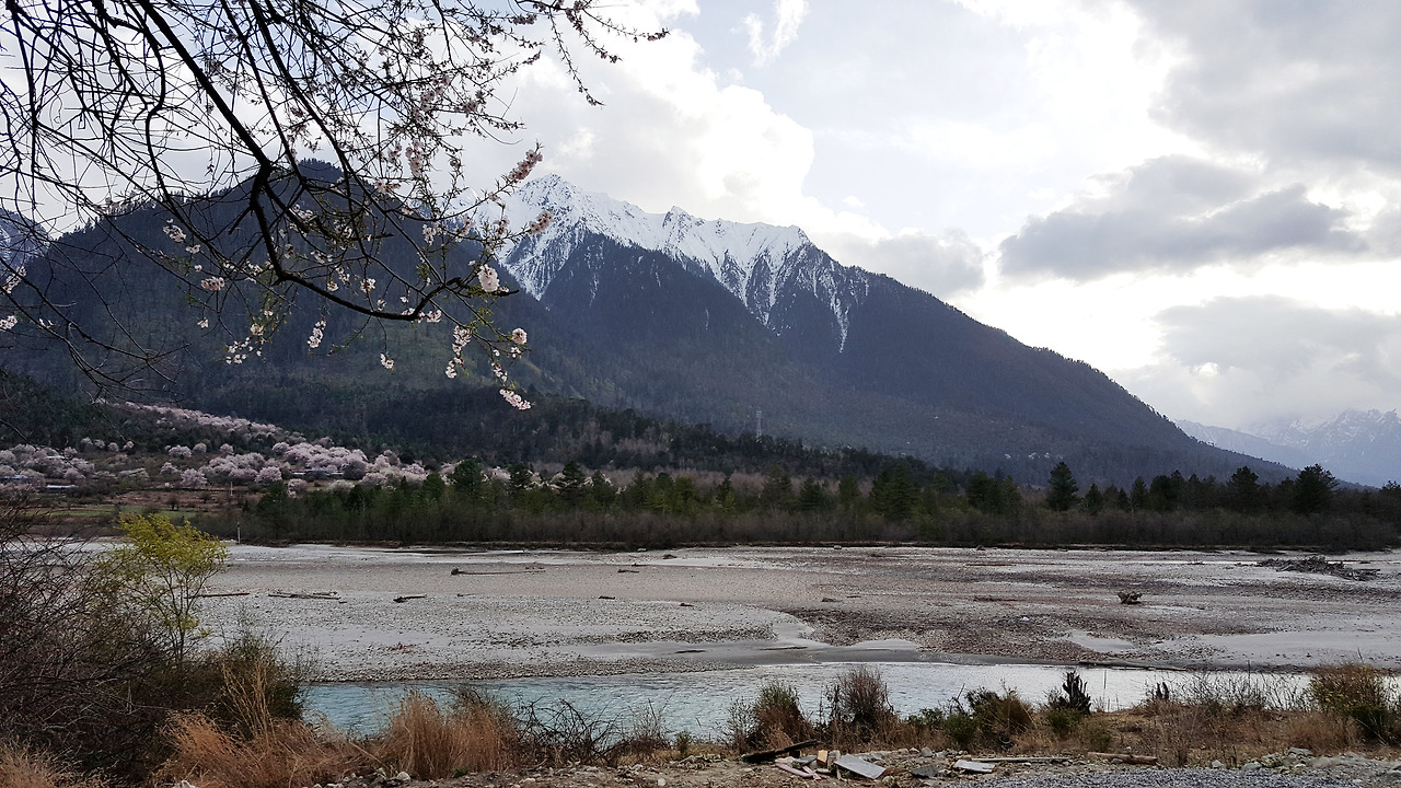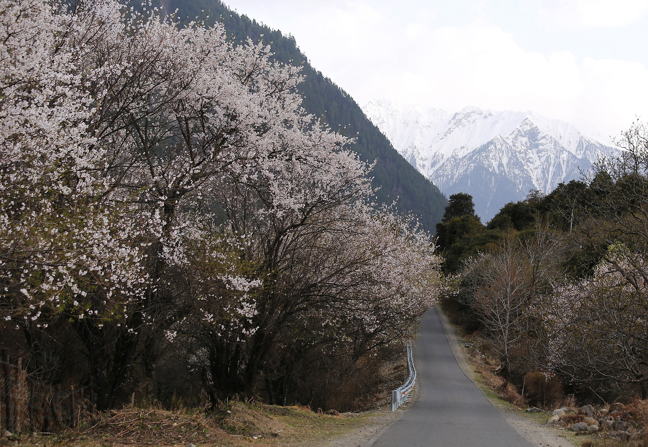 용(Yiong) 강과 파룽泊龍강이 만나는 곳에 최근에 세워진 듯한 통마이대교通麥大橋가 있다. 현대적인 교각이 이곳의 풍경 안에서 어설프고 낯설다. 통마이를 지나면서 파룽泊龍藏布강이 흐르는 318번 국도변은 온통 복숭아꽃 마을이다. 대부분의 복숭아나무는 가까이 보니 오래전부터 대대손손 이 땅에 터 잡고 살았다는 것을 증명이라도 하듯이 수령이 꽤 많아 보인다. 설산과 어우러진 복숭아꽃이 있는 마을길을 따라 천천히 걸어도 참 좋겠다.