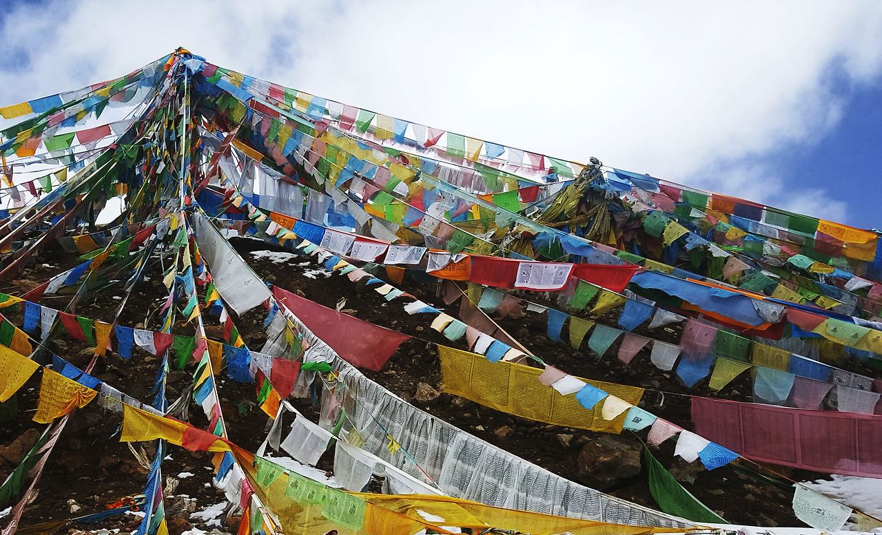 인가가 있는 마을을 빠져나오자 해발고도가 점점 높아지면서 서늘한 기운이 스며든다. 써지라산色季拉山 고개이다. 알록달록 천에 적혀있는 불경이 바람에 날아가 세상에 전해지도록, 산을 덮은 다르쵸를 보니 반갑다. 어제는 미라산커우에서 보고, 오늘은 써지라산 고개에서 만난다. 동부 티베트(쓰촨)에서는 흔했던 다르쵸가 시짱 티베트에서는 생각보다 귀하다.