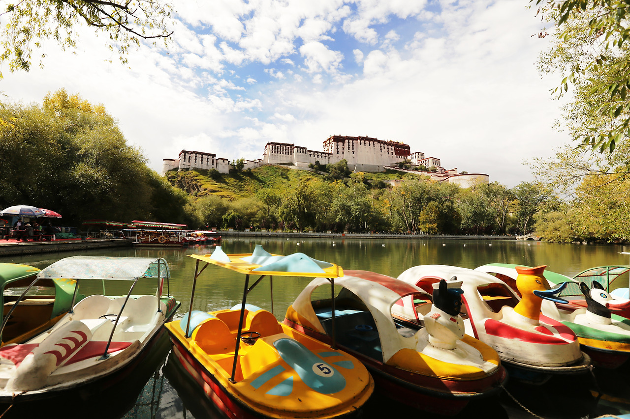궁의 후원 연못에서 바란본 포탈라궁, 10월