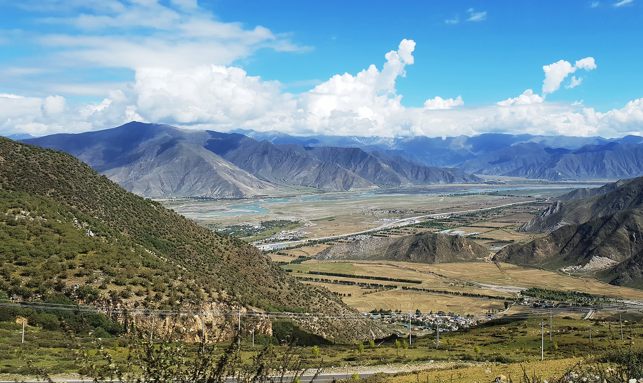 간덴 사원 오르는 길에서, 멀리 라싸강이 보인다.