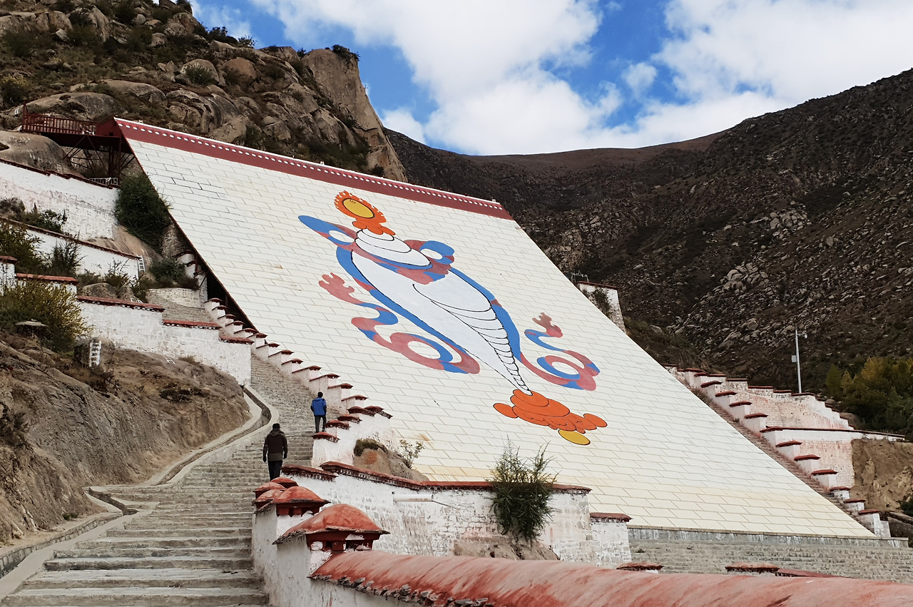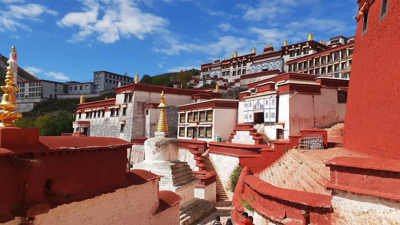 600년이 넘는 시간을 따라 수 없이 많은 사람들이 다녔던 아름다운 능선을 따라 입구에 도착하면 해발고도 약 4,300미터에 달하는 간덴 사원 군이 옹기종기 모여 있다. 1959년 이후 티베트에 불어 닥친 불행은 겔룩파의 총본산인 이곳을 철저하게 파괴시켰다. 이어진 약탈은 겔룩파의 스승 총카파의 유골마저 흩어져버렸다고 한다.