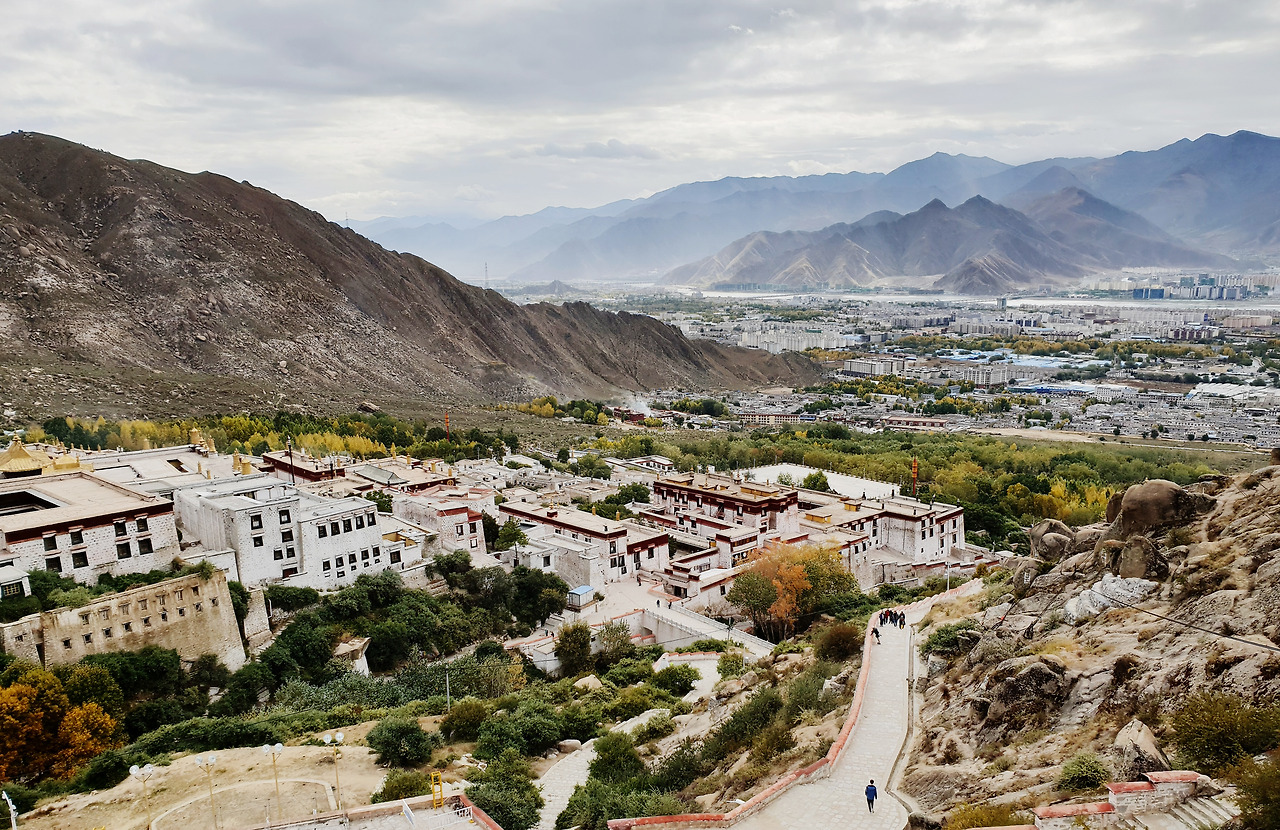 드레풍사원에서 보이는 라싸시내, 역시 왕궁의 입지를 지녔다.