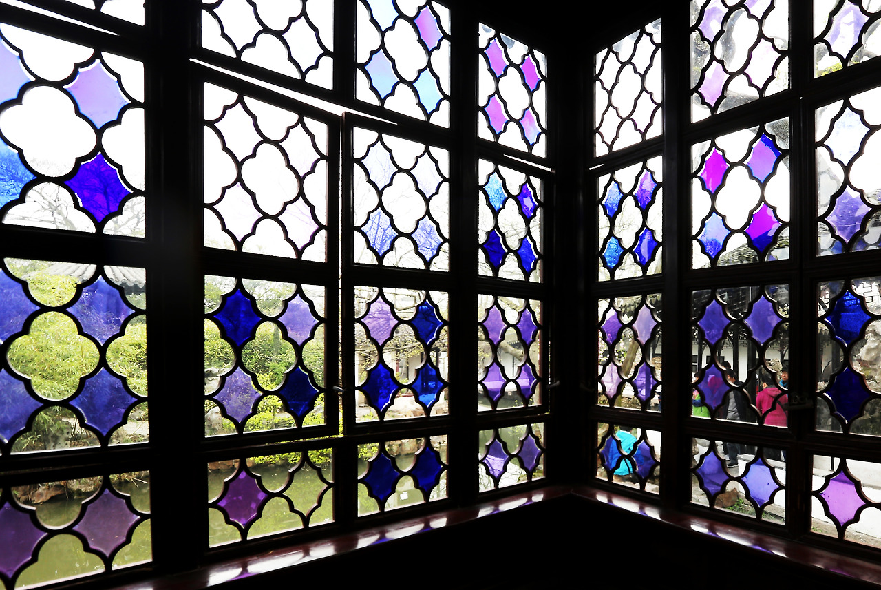 삼십육원앙관, 보랏빛 유리로 만들어진 창을 열면 서로 다른 풍경들이 들어온다.